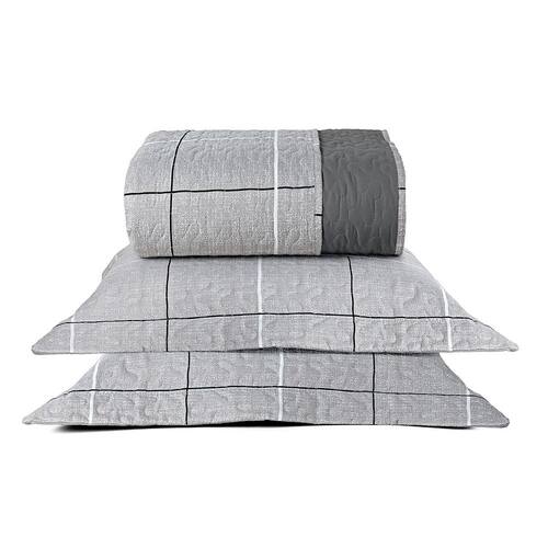 Kit Cobre Leito Colcha Celi Casal Padrão Dupla Face Micropercal 200 Fios 3 Peças Xadrez Grid Cinza - Única