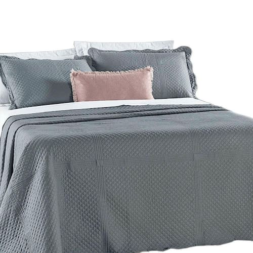 Kit Cobre Leito Colcha Clean Queen Dupla Face - Cinza