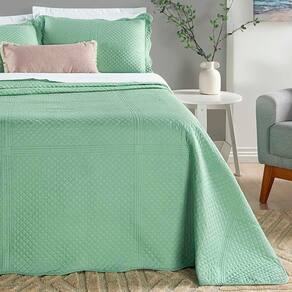 Kit Cobre Leito Colcha Clean Queen Dupla Face - Verde - 100% Poliéster