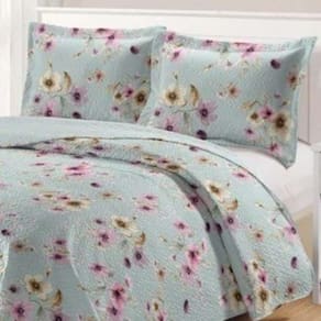 Kit Cobre Leito Colcha Daily Queen 3 Peças Dupla Face Estampado - Floral 55 - 100% Poliéster