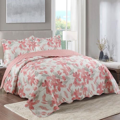 Kit Cobre Leito Colcha Daily Queen 3 Peças Dupla Face Estampado Floral - Cecilia Rosê - Única