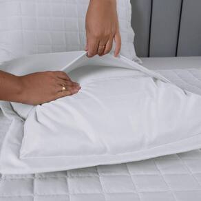 - Os porta travesseiros medem 70cm x 50cm e possui aba americana;