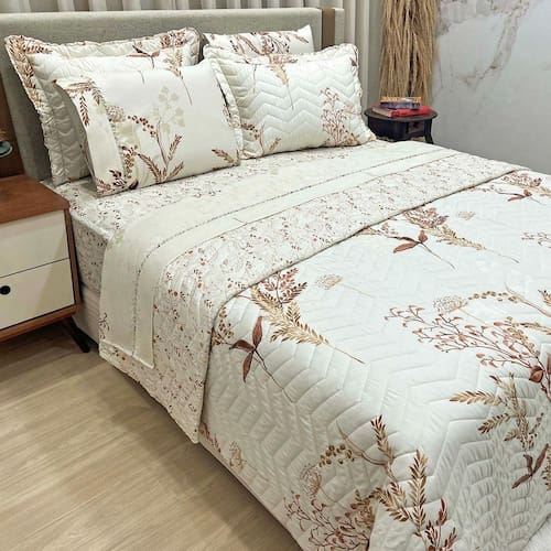 O design em alto relevo do Kit Cobre Leito e Lençol Topázio adiciona um toque de elegância e estilo à sua decoração, criando uma atmosfera aconchegante e refinada. Cada detalhe é cuidadosamente trabalhado para criar um padrão de textura que não apenas encanta visualmente, mas também acrescenta dimensão ao seu ambiente.