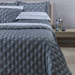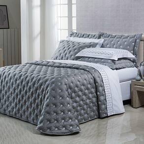 Kit Cobre Leito Colcha Garland Queen 100% Algodão 400 Fios Acetinado Bordado 5 Peças - Cinza Escuro - Única