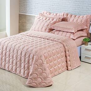 Kit Cobre Leito Colcha Garland Queen 100% Algodão 400 Fios Acetinado Bordado 5 Peças - Rosê E Fendi - Única