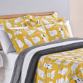 A estampa delicada de gatinhos adiciona um toque lúdico e moderno à decoração, tornando o ambiente mais acolhedor e estiloso. Além disso, o acabamento matelado confere um visual sofisticado, enquanto as costuras reforçadas garantem um caimento impecável, deixando sua cama sempre bem arrumada e convidativa.