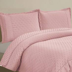 Kit Cobre Leito Colcha Jovial Casal Dupla Face 3 Peças - Rosê - 100% Poliéster Explore o luxo e a sofisticação com o Cobre Leito Jovial, uma peça excepcional que eleva o conforto do seu quarto a patamares superiores. O tecido de micropercal, com sua trama fina e suave, proporciona uma experiência de toque irresistível, envolvendo você em uma sensação de maciez inigualável.
