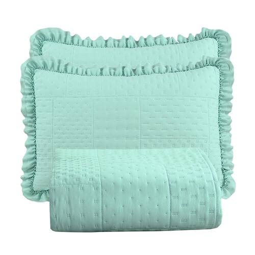 Kit Cobre Leito Colcha Maison Queen com Babado Percal 300 Fios 3 Peças - Verde Menta