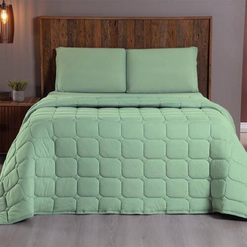 Kit Cobre Leito Colcha Minimal Queen 3 Peças Malha 100% Algodão - Verde