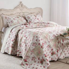 Kit Cobre Leito Colcha Mix King Estampado Dupla Face Floral 3 Peças - Isabela