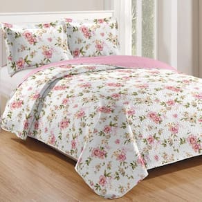 Kit Cobre Leito Colcha Mix King Estampado Dupla Face Floral 3 Peças - Nádia - Única