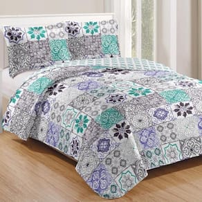 Kit Cobre Leito Colcha Mix Queen Estampado Dupla Face Floral 3 Peças - Thaís
