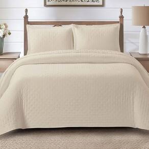 Kit Cobre Leito Colcha Pequim Queen Dupla Face 3 Peças - Palha - 100% Poliéster