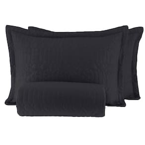 Colcha Cobre Leito Preto Casal Queen Com Viés 3 Peças