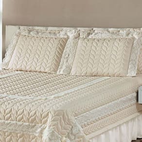 O detalhe em renda adiciona uma camada de delicadeza e romantismo ao conjunto, transformando a Colcha Romance em uma peça única e encantadora. Este é o diferencial que torna o seu espaço de dormir verdadeiramente especial.