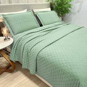 Kit Cobre Leito Colcha Ryviera Queen Dupla Face 3 Peças - Verde Claro Explore o luxo e a sofisticação com o Cobre Leito Ryviera, uma peça excepcional que eleva o conforto do seu quarto a patamares superiores. O tecido de micropercal, com sua trama fina e suave, proporciona uma experiência de toque irresistível, envolvendo você em uma sensação de maciez inigualável.
