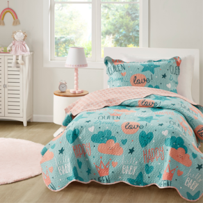 O destaque deste kit é sua versatilidade, pois é dupla face, oferecendo duas estampas diferentes para escolher. Seu filho pode mudar a aparência do quarto facilmente, apenas virando a colcha. Com uma variedade de padrões vibrantes e coloridos, desde animais fofinhos até personagens adoráveis, há algo para todos os gostos. Deixe a imaginação do seu pequeno voar enquanto eles mergulham no mundo mágico das estampas divertidas deste conjunto.