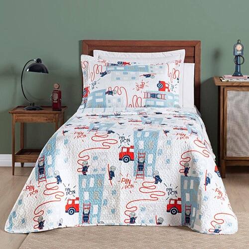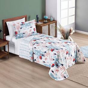 Opção perfeita para quem gosta de mudar o visual do quarto, as colchas são práticas e cheias de personalidade. O Kit Colcha Infantil Solteiro 2 Peças da Coleção Fantasy é composto por uma colcha e um porta travesseiro com estampas temáticas e divertidas que vão complementar a decoração do quarto do seu pequeno.