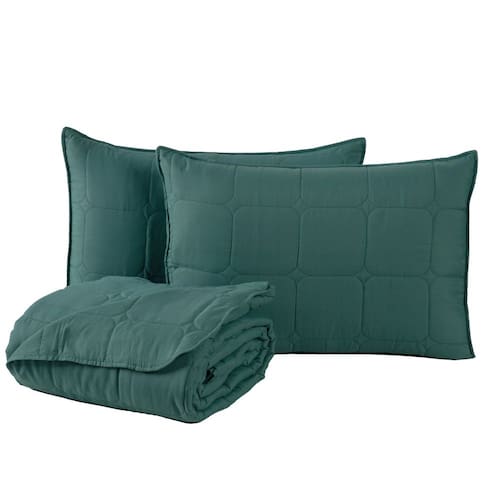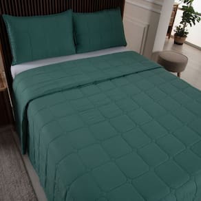 Kit Cobre Leito Colcha Speciale Casal Matelado Toque Acetinado 400 Fios 3 Peças Verde - Única