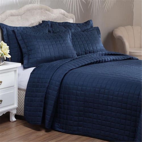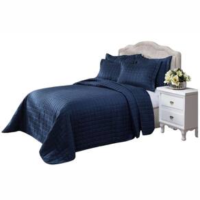 Kit Cobre Leito Dupla Face Micro Percal 200 Fios Solteiro Com Porta Travesseiro - Azul Marinho