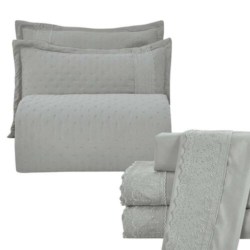 Kit Cobre Leito e Lençol Casal Melody Dupla Face 7 Peças - Cinza - 100% Poliéster Explore o luxo e a sofisticação com o Cobre Leito Melody, uma peça excepcional que eleva o conforto do seu quarto a patamares superiores. O tecido de micropercal, com sua trama fina e suave, proporciona uma experiência de toque irresistível, envolvendo você em uma sensação de maciez inigualável.