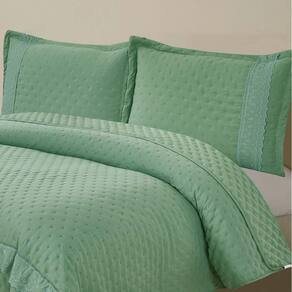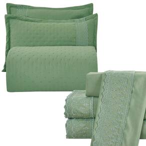 Kit Cobre Leito e Lençol Queen Melody Dupla Face 7 Peças - Esmeralda - 100% Poliéster Explore o luxo e a sofisticação com o Cobre Leito Melody, uma peça excepcional que eleva o conforto do seu quarto a patamares superiores. O tecido de micropercal, com sua trama fina e suave, proporciona uma experiência de toque irresistível, envolvendo você em uma sensação de maciez inigualável.