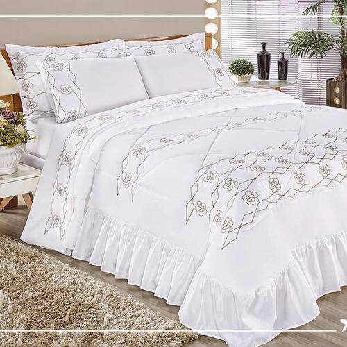 Kit Cobre Leito Elegância Casal Queen 03 Peças Bordado - Branco Contém:01 Cobre Leito 2,60m x 2,55m02 Portas Travesseiros 70cm x 50cm02 Refis de Travesseiros 65cm x 45cm Composição:Tecido Superior: Microfibra 100% PoliésterTecido Inferior: 50% Algodão e 50% PoliésterEnchimento: 100% Poliéster Informações:- Imagens meramente ilustrativas.- Pode haver alteração de cores de acordo com o seu monitor ou celular. Garantia contra defeitos de fabricaçãoMarca: Finos EnxovaisModelo: Elegância
