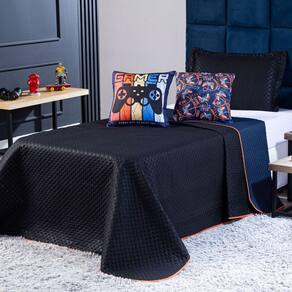Confeccionado em tecido Microfibra Poliéster, a nova Coleção Gamer Day vem trazendo um toque macio, com portas em acabamento debrum, o cobre leito com enchimento em manta dupla face, combinando cores modernas, permitindo o uso dos dois lados (Preto e Azul Marinho), tudo para combinar com a sua decoração! Acompanhando duas lindas capas de almofadas estampadas digitais com zíper, facilitando a lavagem e o seu dia a dia para montar a cama do seu jeito! Produzido num rigoroso controle de qualidade, dando um toque de requinte para o ambiente. Confira!