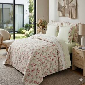 Kit contendo Cobre leito e Jogo de Lençol para cama Casal com 07 peças confeccionado em tecido estampado em  Percal 300 Fios com alto padrão de qualidade, proporcionando conforto, beleza e requinte para seu quarto.