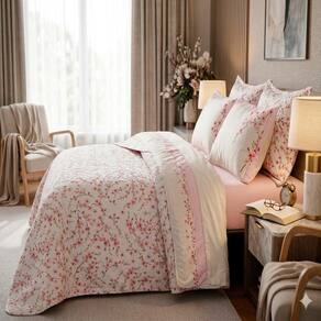 Kit contendo Cobre leito e Jogo de Lençol para cama Casal com 07 peças confeccionado em tecido estampado em Percal 300 Fios com alto padrão de qualidade, proporcionando conforto, beleza e requinte para seu quarto.