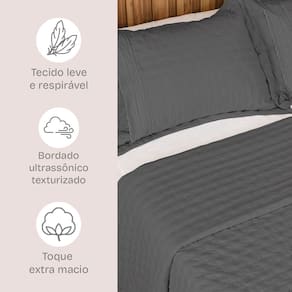 Kit Cobre Leito King 3 peças com Bordado Inglês Micro Percal Ultrassônico BF Colchões - Grafite | Cinza