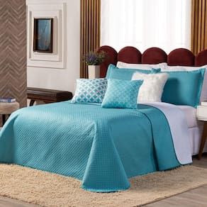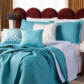 Confeccionado em tecido Microfibra 100% poliéster, a nova Coleção Miami vem trazendo um toque macio, com portas em acabamento debrum, o cobre leito com enchimento em manta dupla face, permitindo o uso dos dois lados (Verde Tiffany e Branco) com lindos detalhes nas capinhas de almofadas estampadas e na almofadinha de Plush! Tudo para combinar com a sua decoração! Produzido num rigoroso controle de qualidade, dando um toque de requinte para o ambiente. Confira!