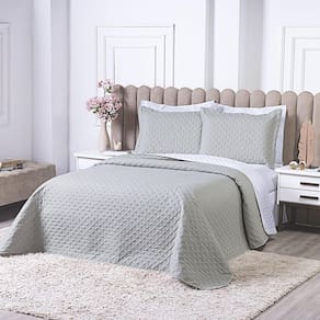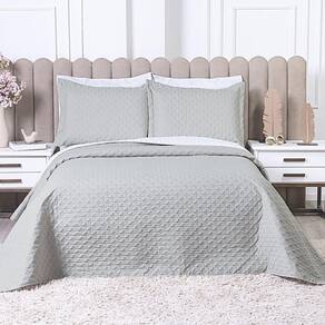 Design Sofisticado: O cobre leito e os porta travesseiros são adornados com um bordado moderno que cria uma textura única e um visual luxuoso.