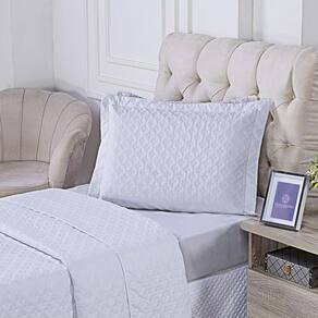 Acabamento Premium: O kit inclui um porta travesseiro bordado com acabamento em debrum, um detalhe que proporciona um caimento perfeito e um visual de cama completa.