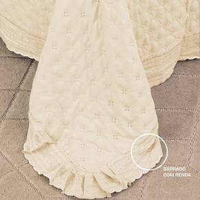 Tecido: Micro percal 100% poliéster Detalhes: Bordado Inglês Enchimento: Microfibra de poliéster Acabamento: Matelassê ultrassônico com textura em baixo-relevo