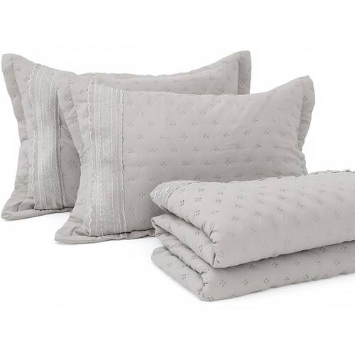 Kit Cobre Leito Queen 3 peças com Bordado Inglês Micro Percal Ultrassônico BF Colchões - Cinza