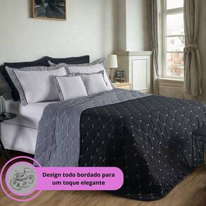 Kit Cobre Leito Queen Bordado 7 Peças Dupla Face 400 Fios
