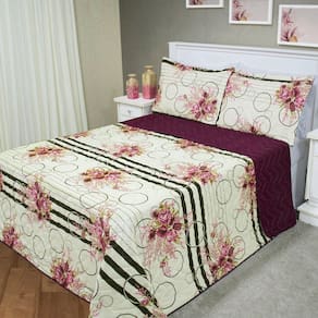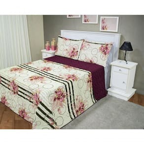 Marca: Enxovais Aquarela | Estampa: Não se Aplica | Medidas: 01 Cobre Leito Matelado 2,60m x 2,40m02 Porta Travesseiros 65cm x 45m | Número de Peças: 03 Peças | Material: Poliéster | Cor Predominante: Floral Vinho | Cama Indicada: Queen