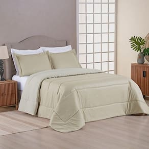 Cama Completa e Aconchegante: O acabamento matelassado deixa as peças mais volumosas e o kit já acompanha dois porta travesseiros para uma cama posta completa.
