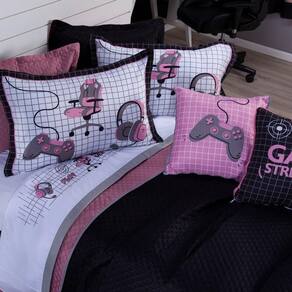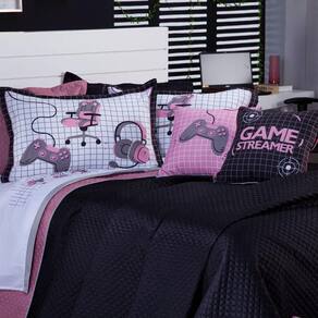 A Nova Coleção Game Streamer em Microfibra tem um toque suave e macio, o tecido caracteriza-se por ser muito leve, confortável, sedoso, com secagem rápida e ótimo caimento. Vem trazendo estilo para a decoração de seu quarto na nova tendência Dupla Face, podendo utilizar as 2 cores do cobre leito! Ficará de ótimo bom gosto e elegância, acompanhando porta-travesseiros e duas almofadinhas estampadas super modernas e temáticas! Tudo para combinar com a decoração, perfeito para dar aquele upgrade no ambiente ou para presentear o Gamer que você ama! Confira!