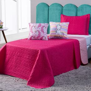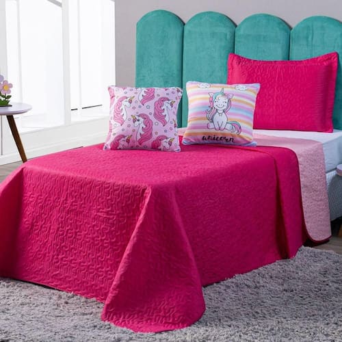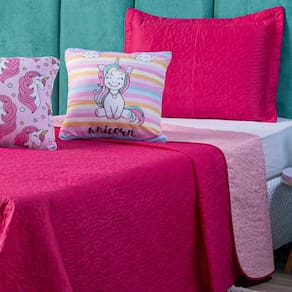 Confeccionado em tecido Microfibra Poliéster, a nova Coleção Unicórnio vem trazendo um toque macio, com portas em acabamento debrum, o cobre leito com enchimento em manta dupla face, combinando cores modernas, permitindo o uso dos dois lados (Pink e Rosa), tudo para combinar com a sua decoração! Acompanhando duas lindas capas de almofadas estampadas digitais com zíper, facilitando a lavagem e o seu dia a dia para montar a cama do seu jeito! Produzido num rigoroso controle de qualidade, dando um toque de requinte para o ambiente. Confira!