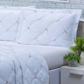 Cama Completa: O kit acompanha dois portas travesseiros bordados com acabamento em debrum, que compõem uma cama harmoniosa e com visual elegante.