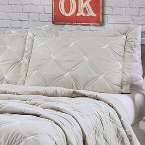 Cama Completa: O kit acompanha dois portas travesseiros bordados com acabamento em debrum, que compõem uma cama harmoniosa e com visual elegante.