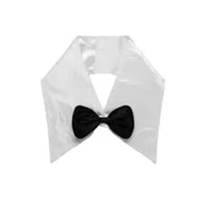 A tiara, com suas orelhas de coelho delicadamente desenhadas, adiciona um toque lúdico e charmoso, enquanto a gola e a gravata borboleta conferem um toque clássico e sofisticado ao visual. Os punhos, com seus botões pretos, complementam o conjunto, garantindo um visual completo e envolvente.