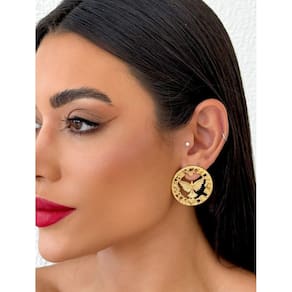 Medidas Do Par de Brincos MedalhaAltura - 5cm / Largura - 5cm