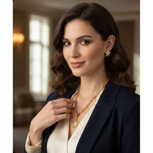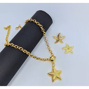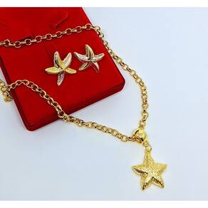 KIT CONJUNTO COLAR E BRINCOS ESTRELA DO MAR METAL FOLHEADO DOURADO