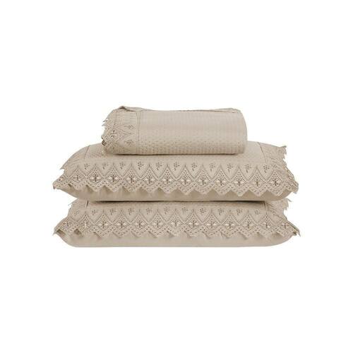 Kit Colcha 3 Peças Queen Percal 300 Fios Bordado Inglês Home Madrid 100% Poliéster - Avelã