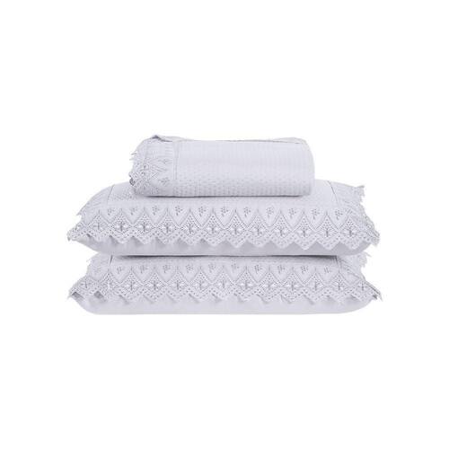 Kit Colcha 3 Peças Queen Percal 300 Fios Bordado Inglês Home Madrid 100% Poliéster - Branco