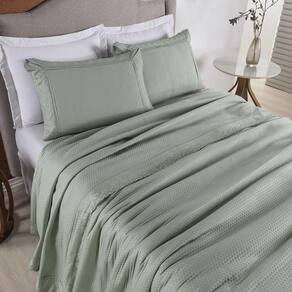 Kit Colcha 3 Peças Queen Percal 300 Fios Bordado Inglês Home Paris - Verde Kit Colcha Home Paris Queen 03 Peças Percal 300 Fios com Bordado Inglês Traga o charme e a elegância parisiense para o seu quarto com o Kit Colcha Home Paris. Este conjunto sofisticado combina a maciez do Percal 300 Fios com o detalhe clássico do Bordado Inglês, criando uma atmosfera de requinte e conforto.