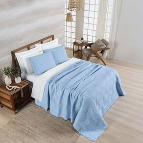 Kit Cobre Leito Colcha Arcos Casal Padrão Dupla Face Matelado 200 Fios 3 Peças Azul Claro O Kit Cobre Leito Arcos é perfeito para quem busca conforto e sofisticação no quarto. Confeccionado em tecido Micropercal 200 fios, possui um matelado ultrassônico que confere elegância e requinte à peça. O enchimento super soft garante maciez e aconchego na hora de dormir. Compondo o conjunto, acompanham duas fronhas com a mesma qualidade e acabamento impecável. Ideal para dar um toque de charme ao seu ambiente, o Kit Cobre Leito Arcos é a escolha certa para um quarto moderno e cheio de estilo.